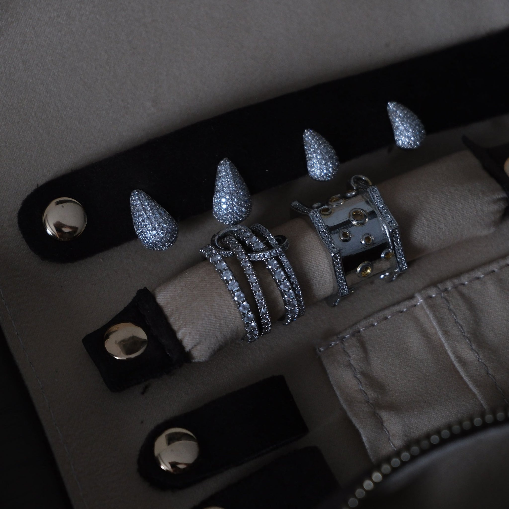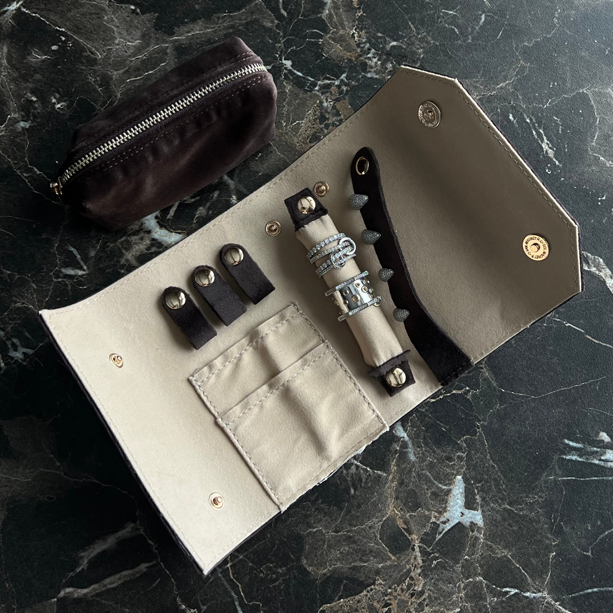 Kadife kesesi çıkartılabilen, seyahat için uyumlu takı kutusu