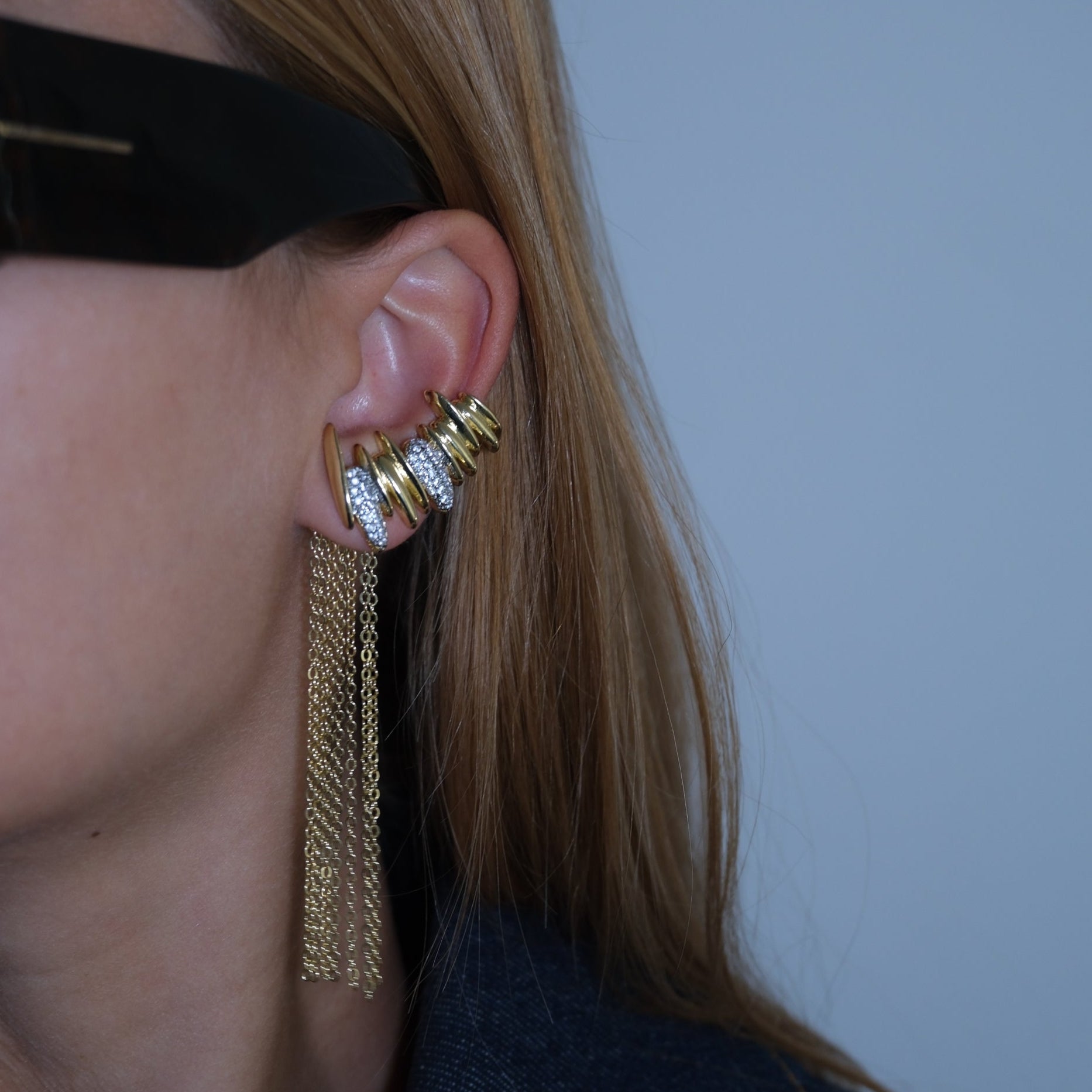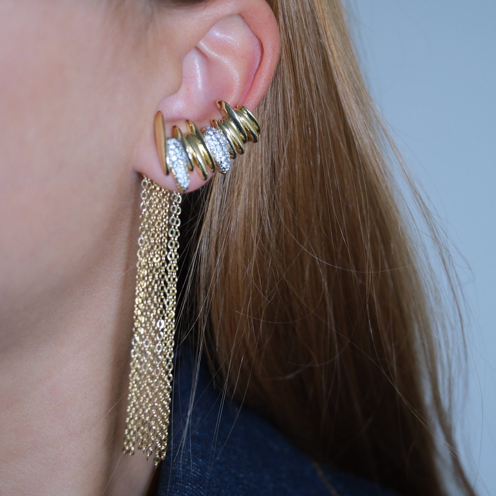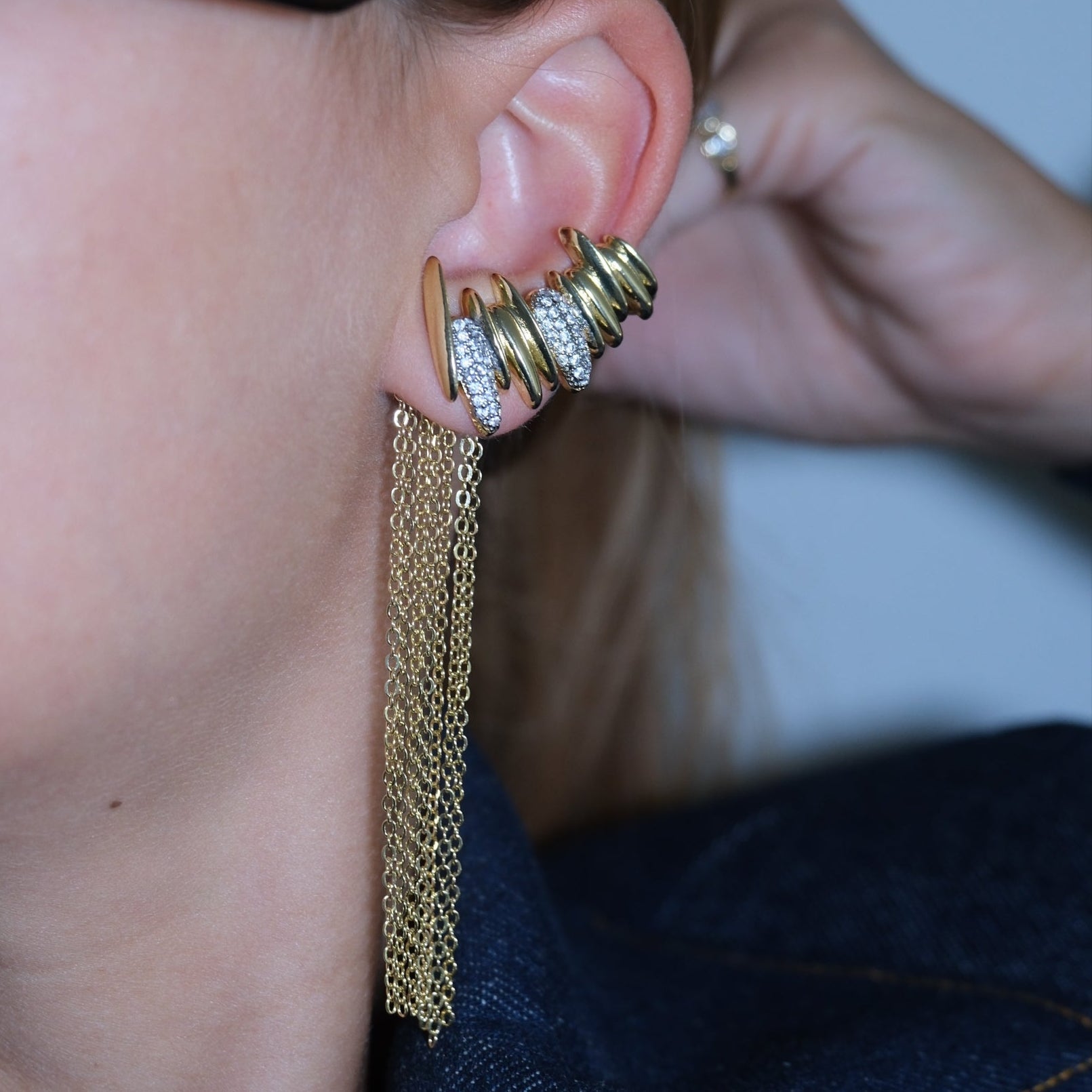 Pirinç üzeri kaplama, zirkon taşlı sallantılı küpe