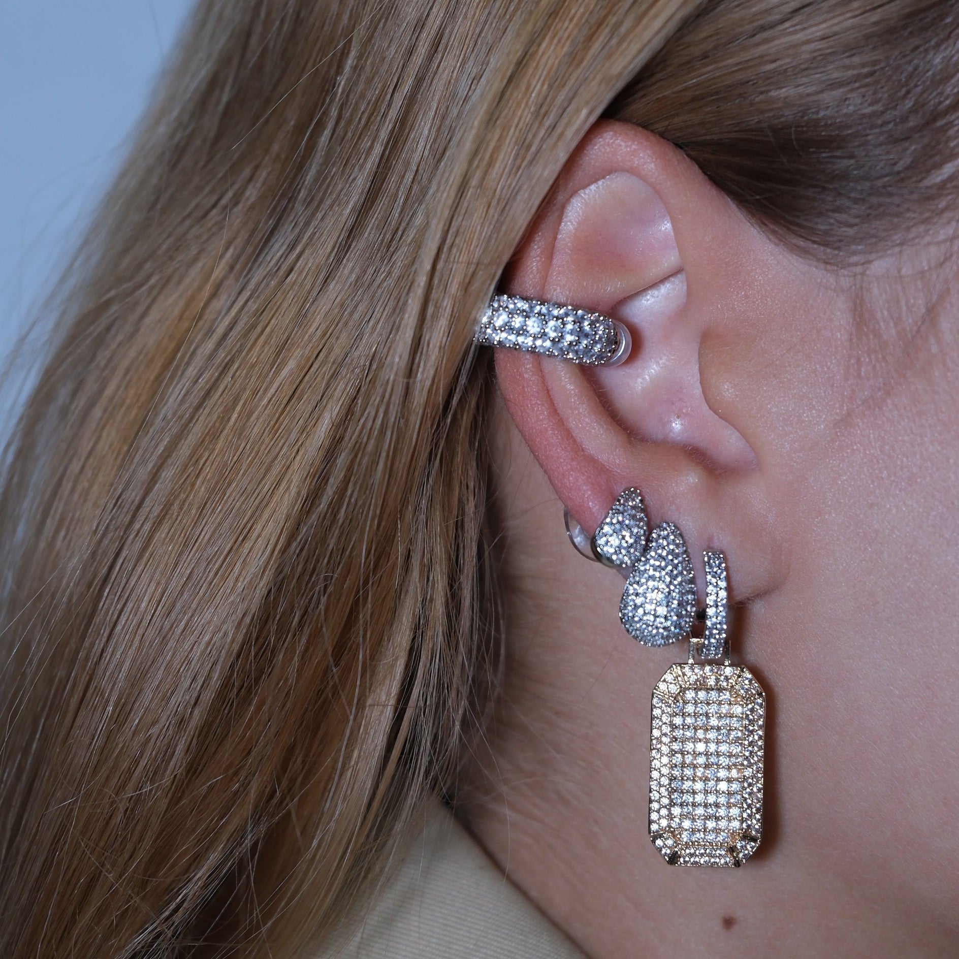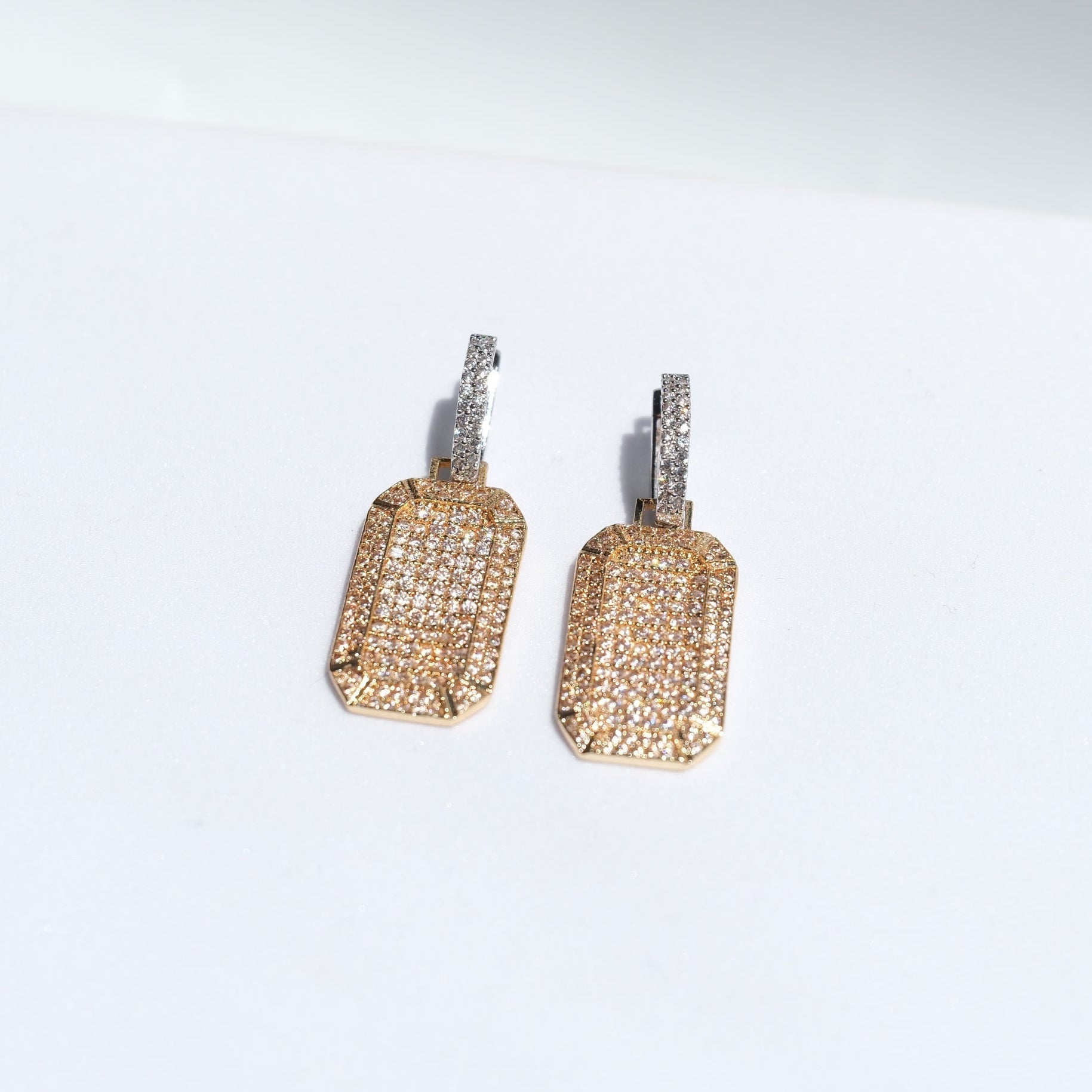 Pirinç üzeri kaplama, zirkon taşlı sallantılı küpe