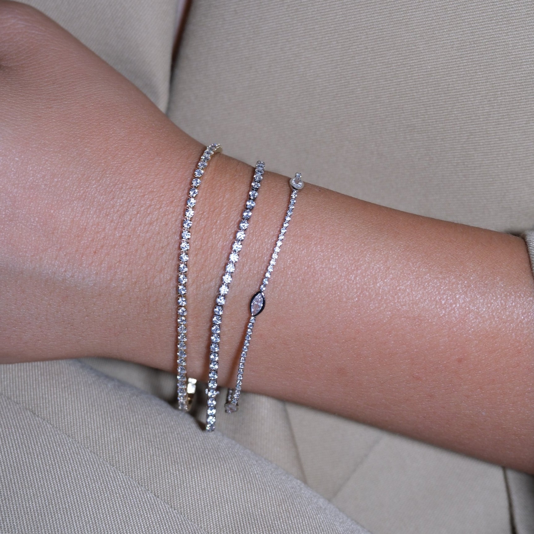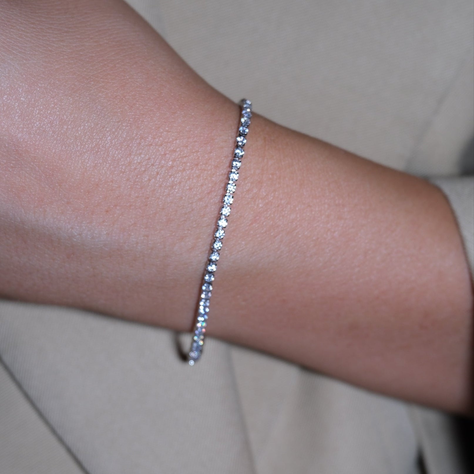 Çelik, zirkon taşlı, ince su yolu bilezik