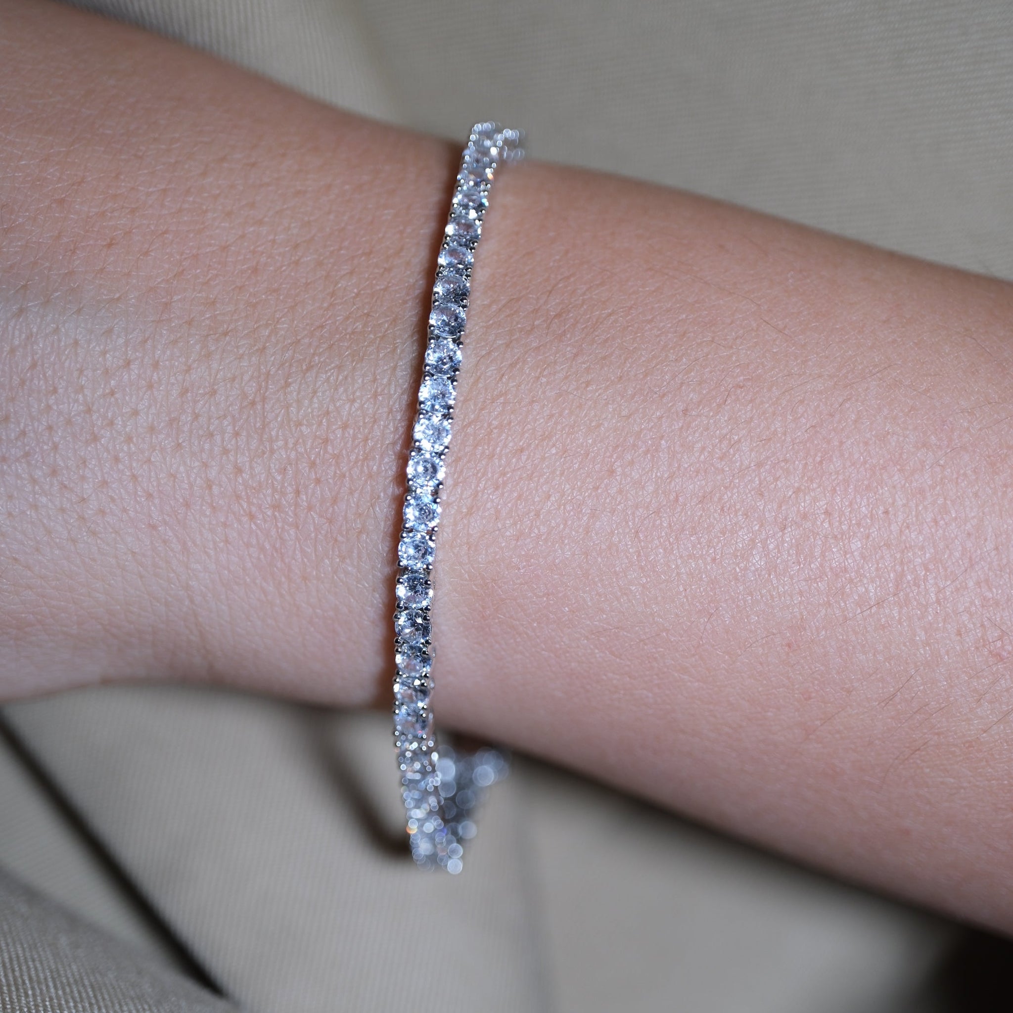 Yuvarlak kesim, beyaz, rodyum kaplama su yolu bilezik