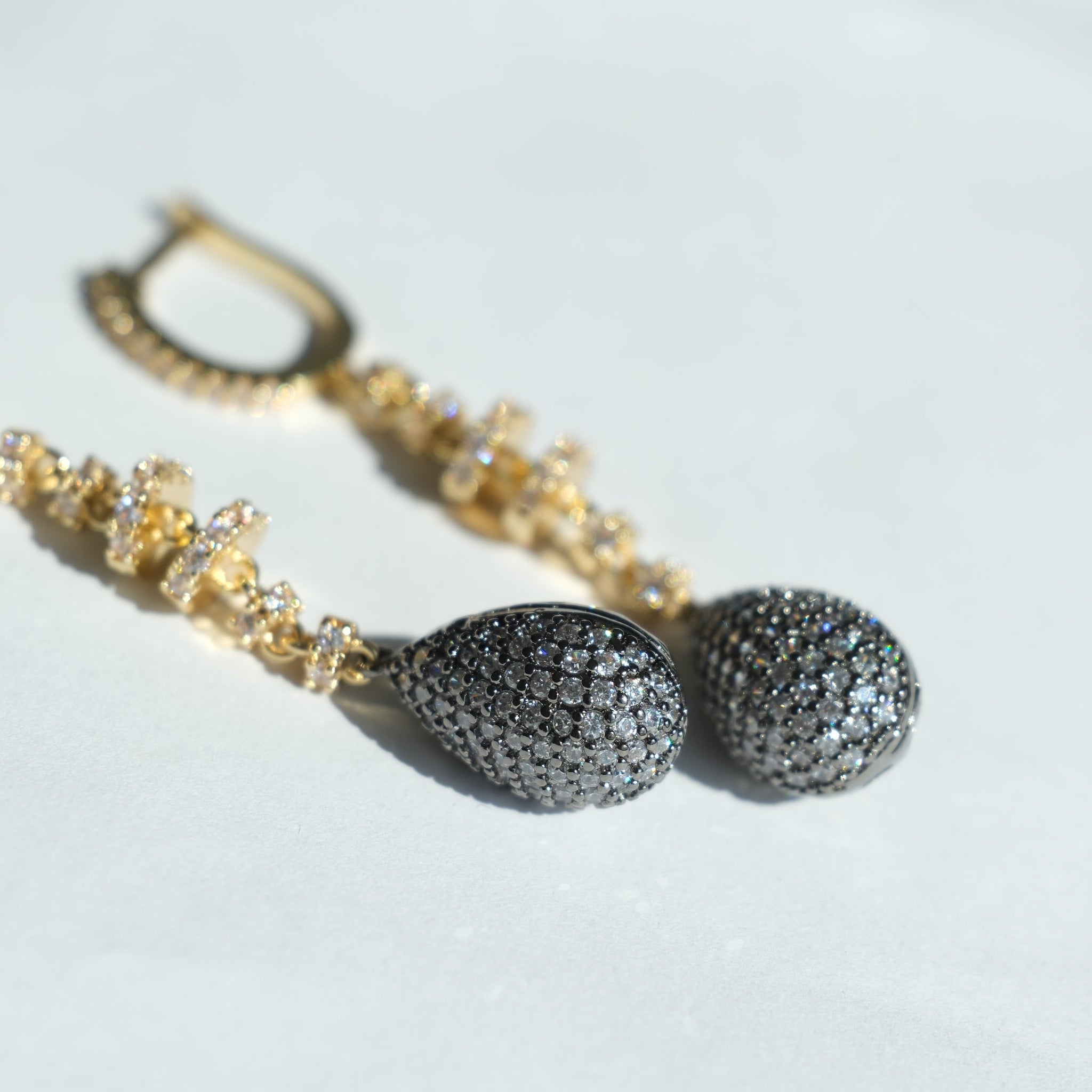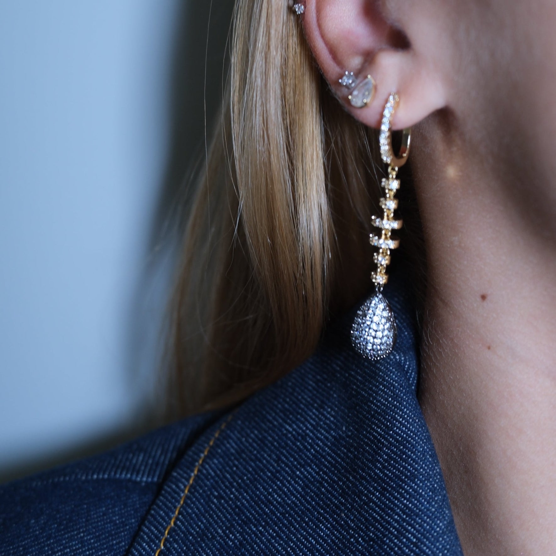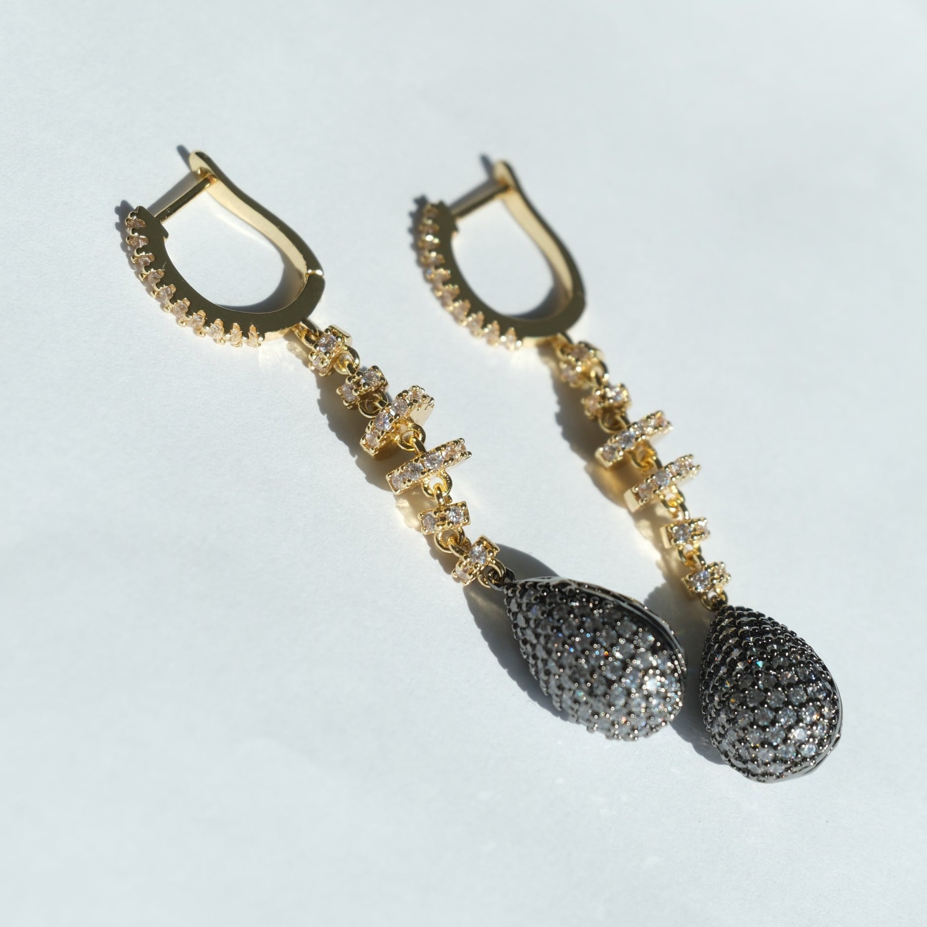 Pirinç üzeri kaplama, zirkon taşlı ve zirkon antrasit sallantılı küpe
