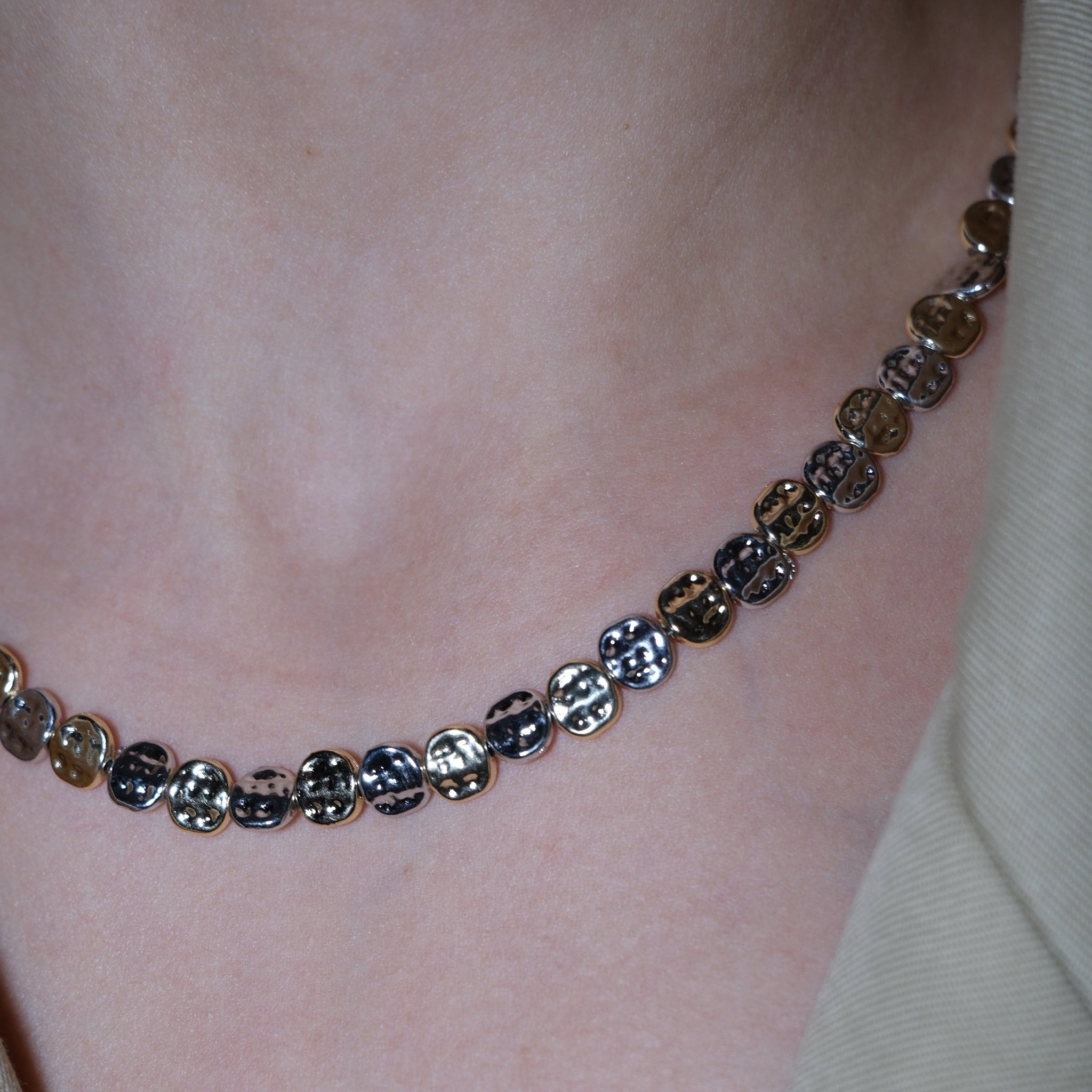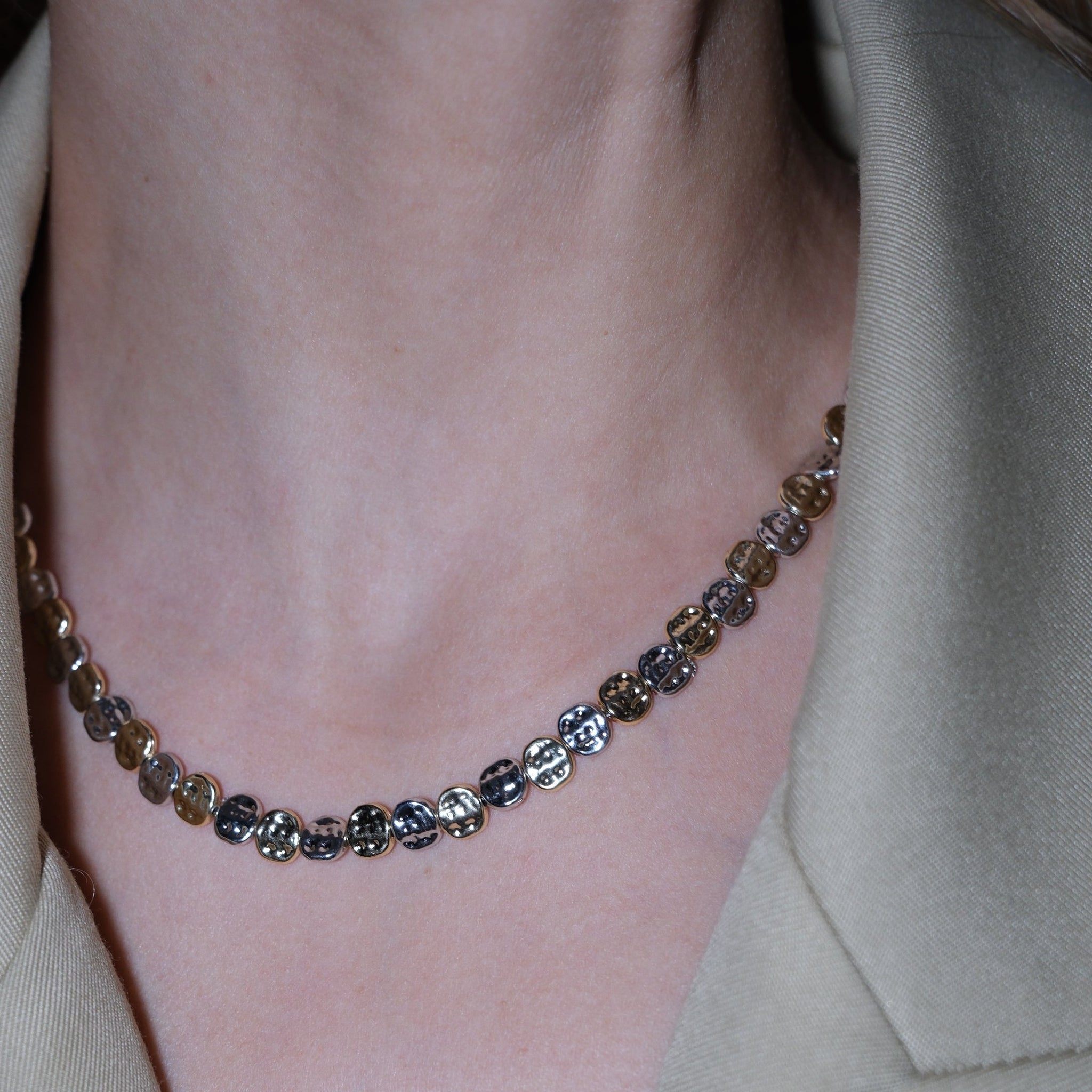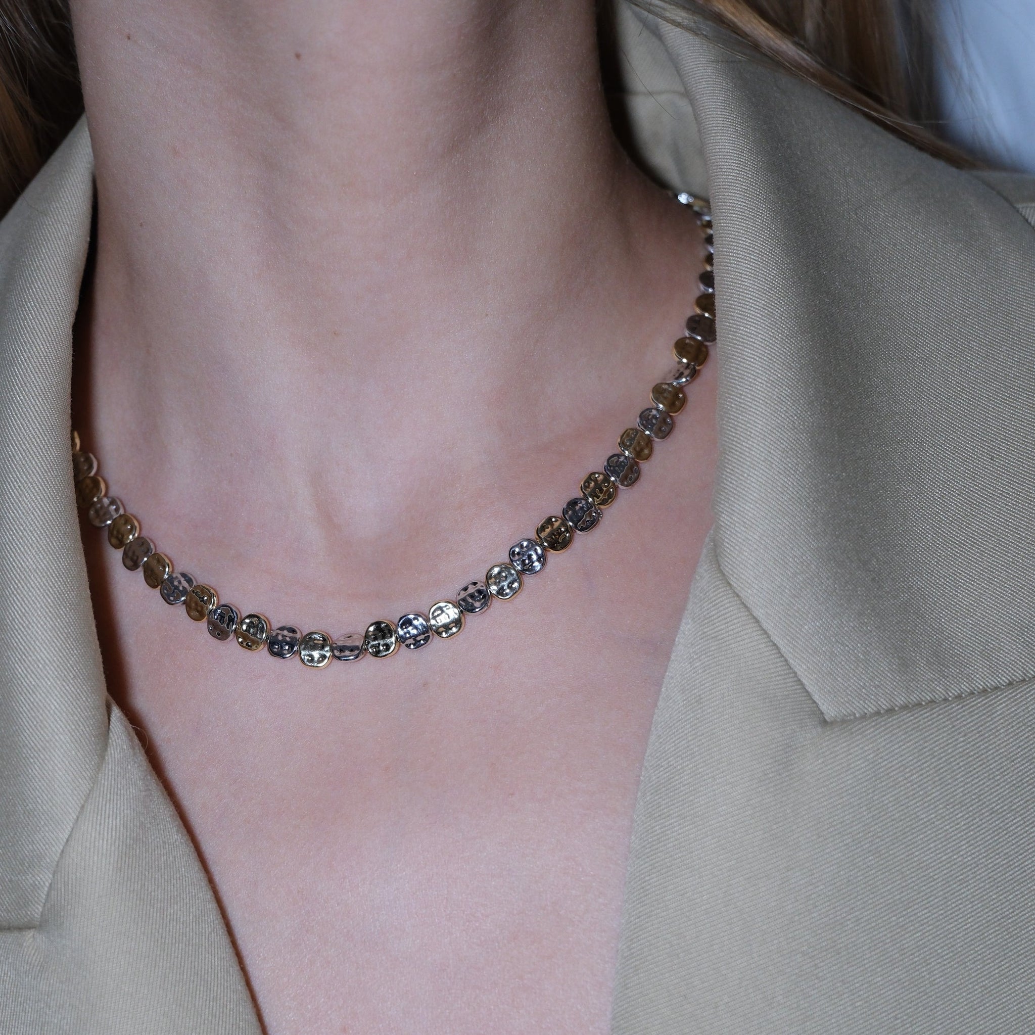 Pirinç üzeri kaplama, çift renk tırtıklı kolye