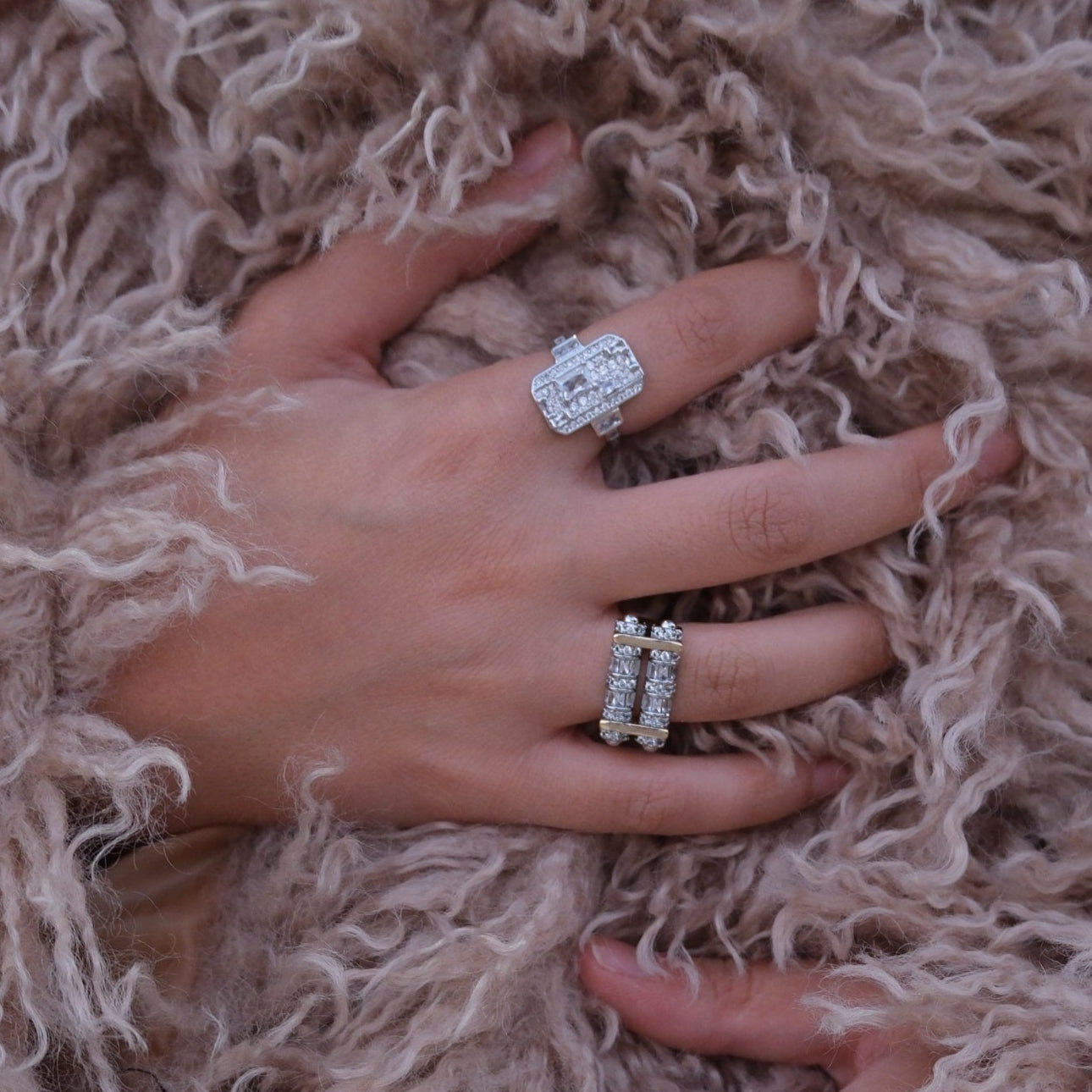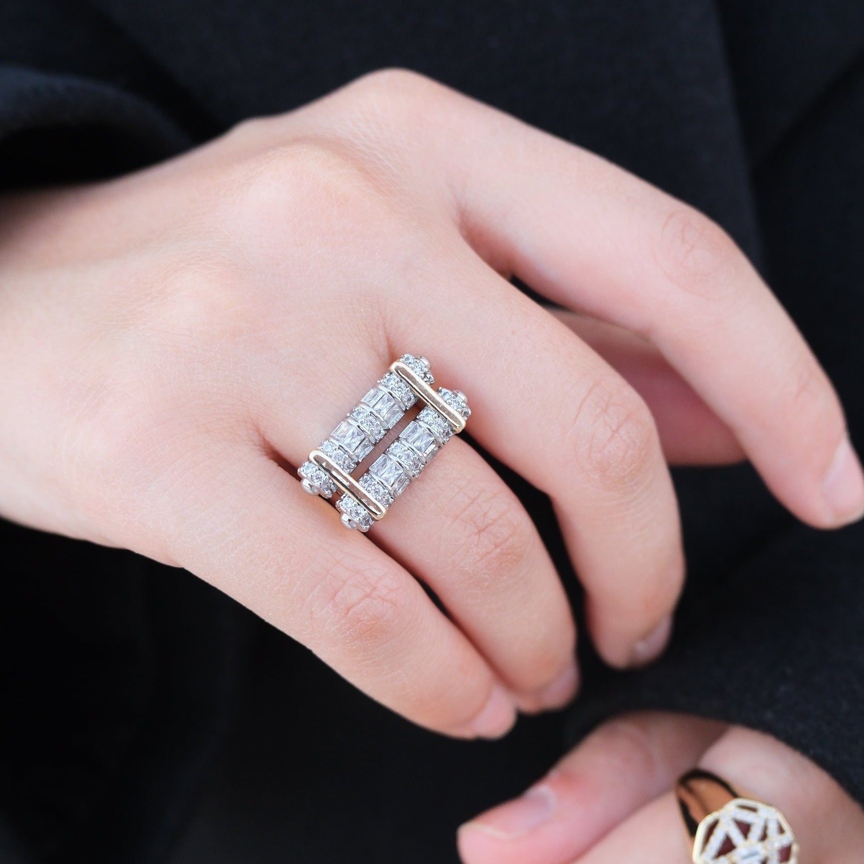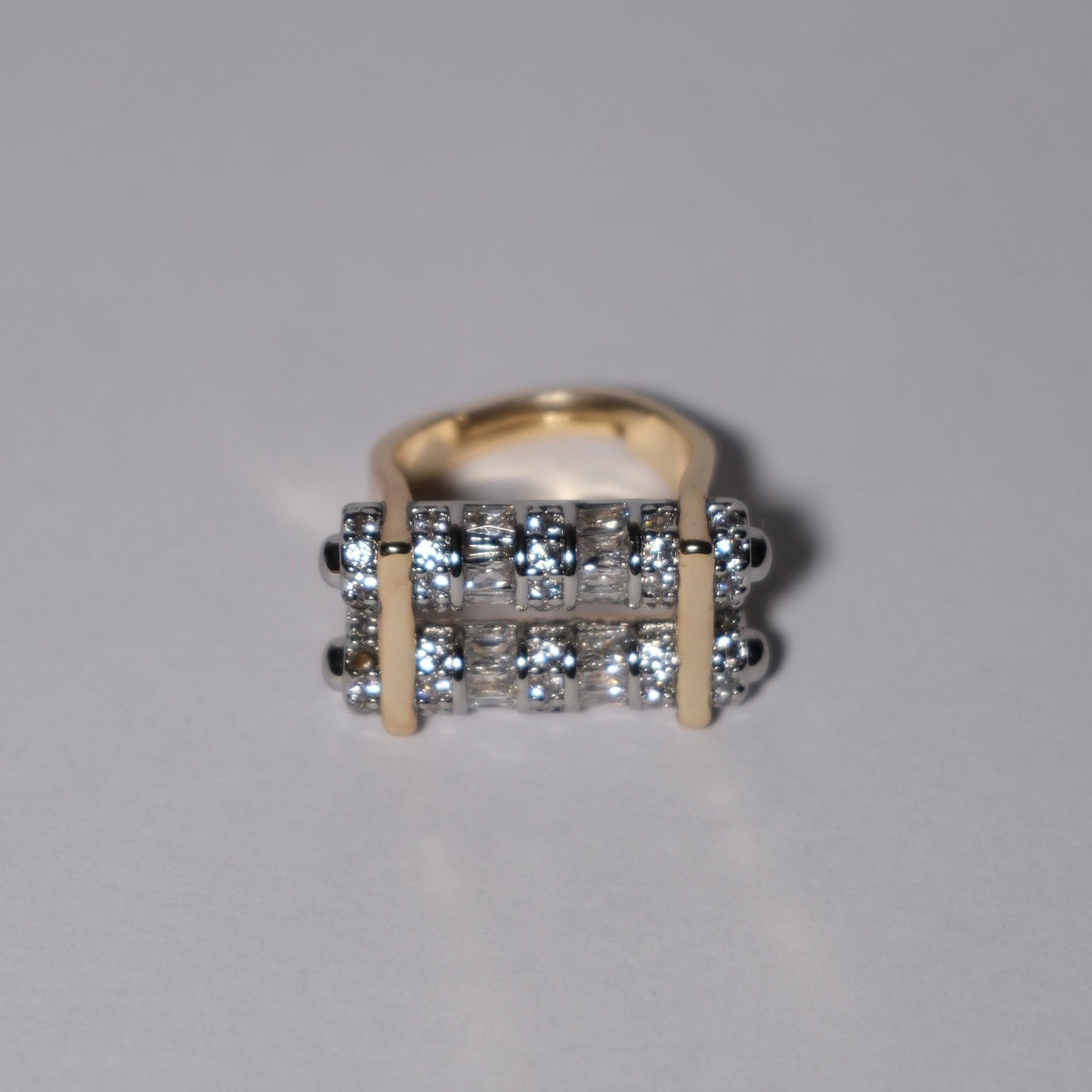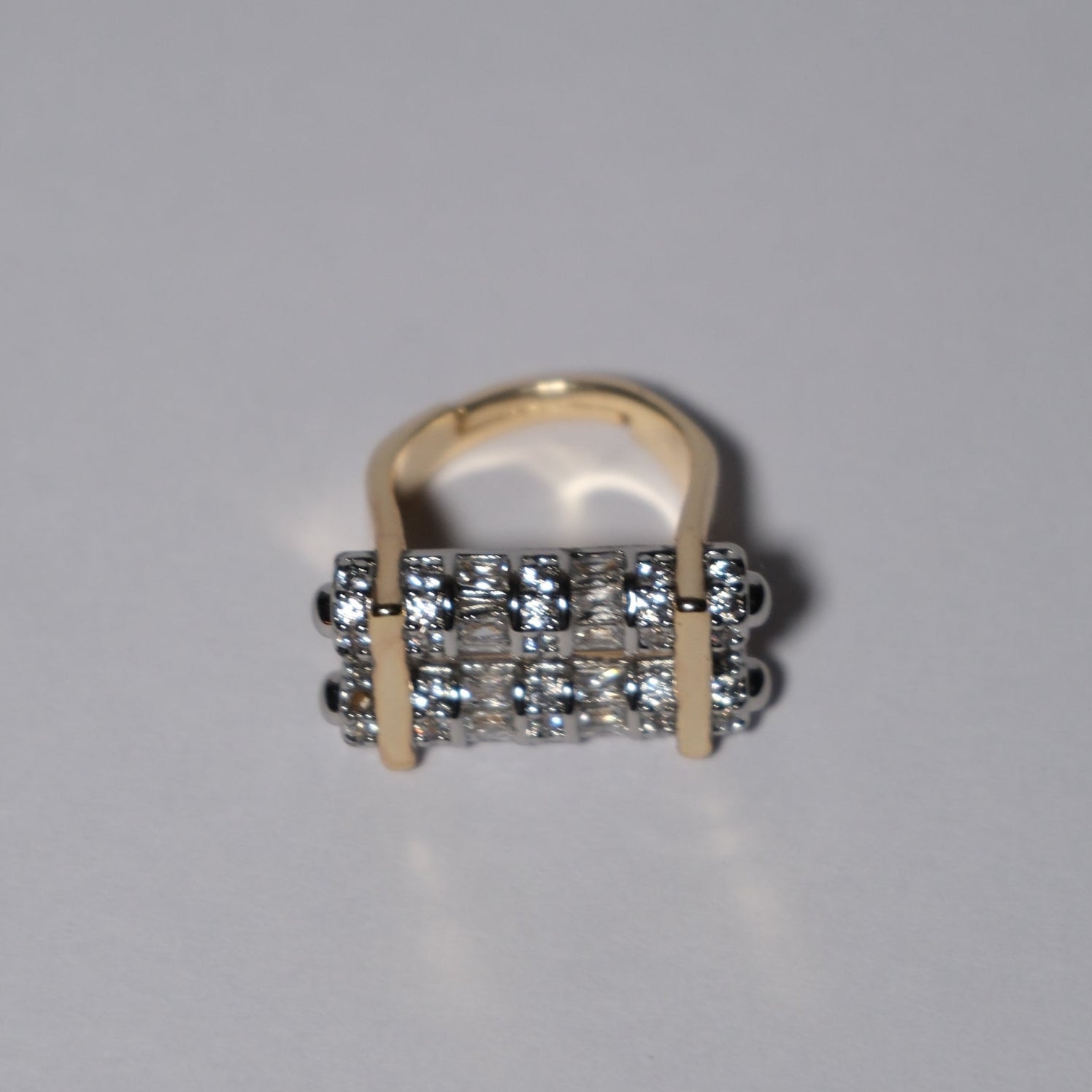 Pirinç üzeri kaplama, zirkon taşlı çift renkli yüzük