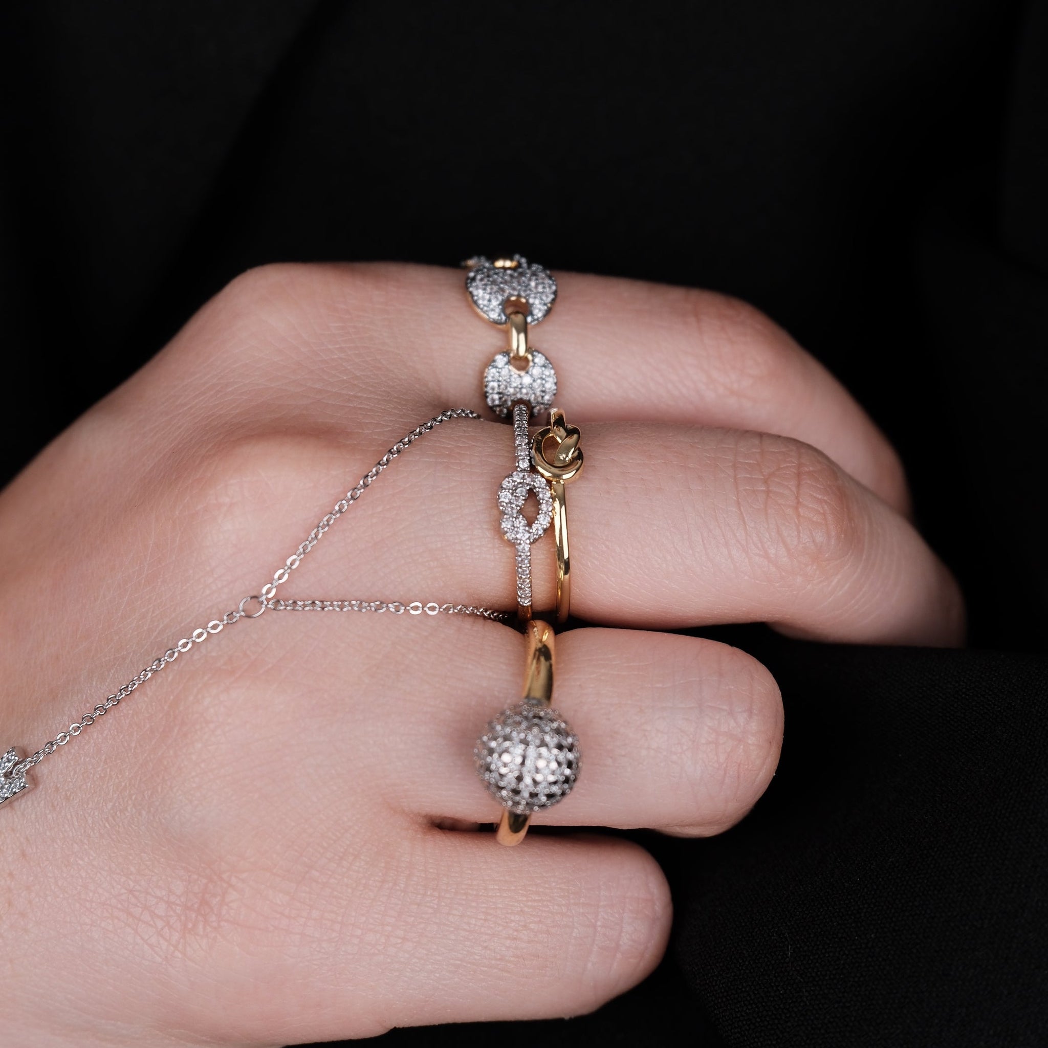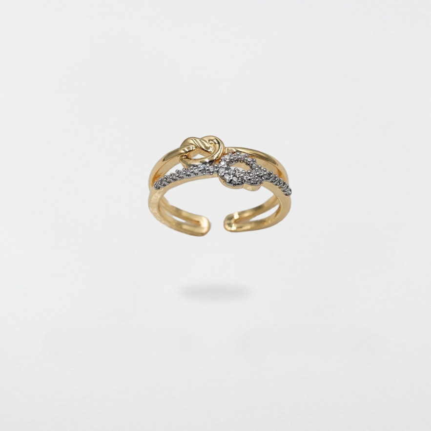Pirinç üzeri kaplama, zirkon taşlı, çift renkli yüzük
